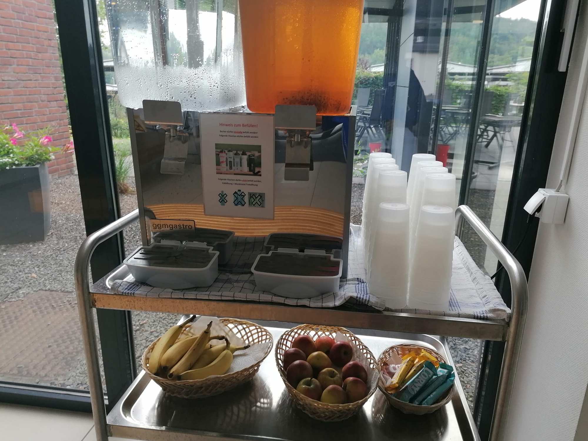 Die Verpflegungsstation mit Wasser, Apfelschorle und diversen Snacks stand 24 Stunden am Tag zur Verfügung.