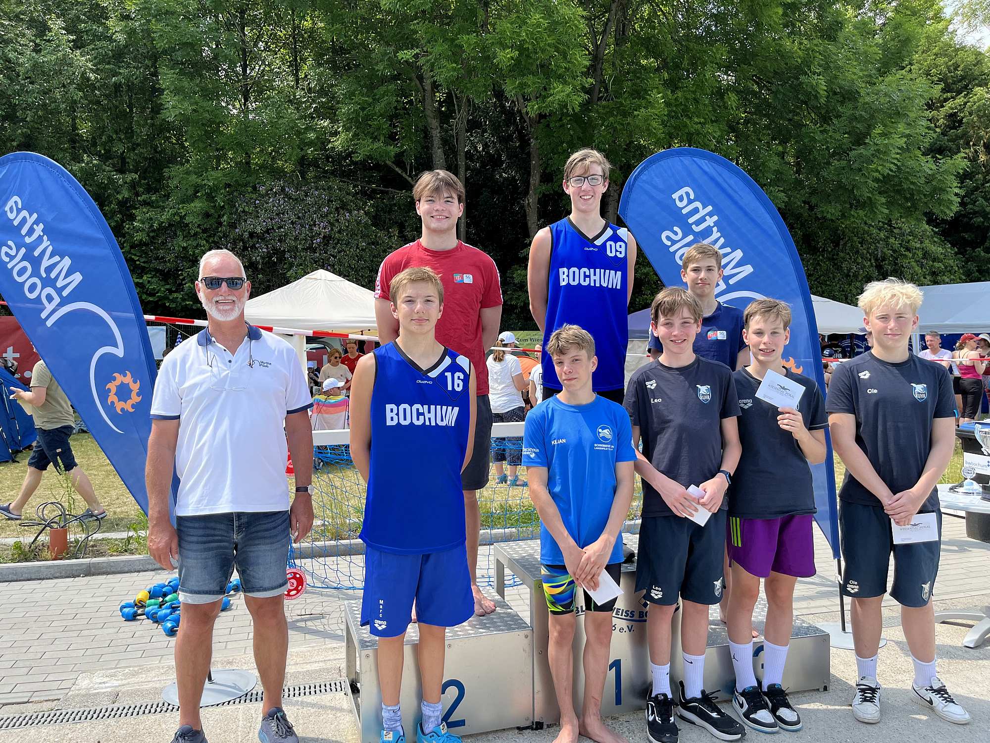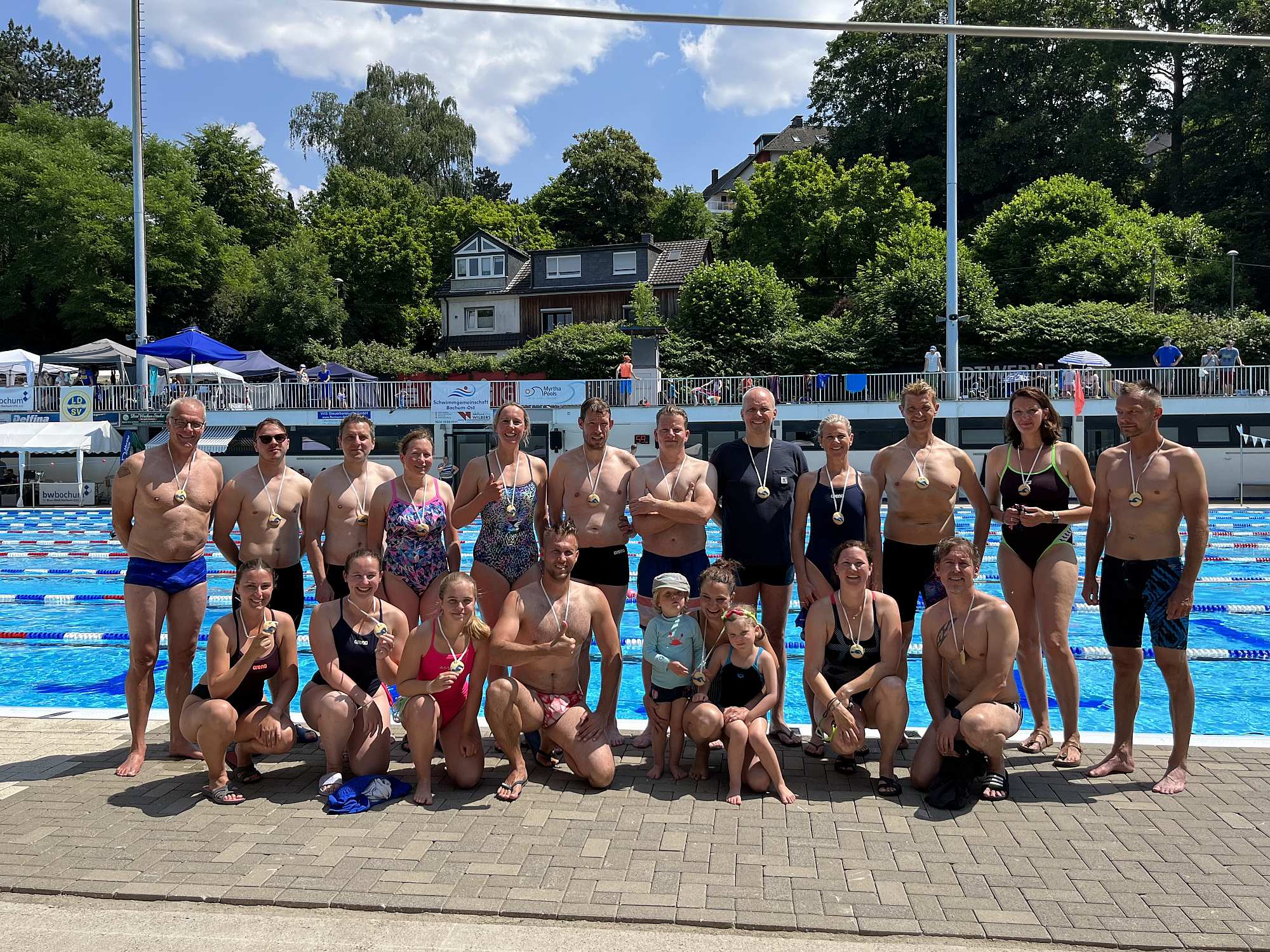 Vom 09.06. bis 11.06.2023 fand im Wiesentalbad des SV Blau-Weiß Bochum der traditionelle Schwimmwettkampf Wiesentalpokal statt. Bei schönstem Freibadwetter gingen 30 Vereine mit rund 450 Schwimmerinnen und Schwimmern gut 2400 Mal an den Start.