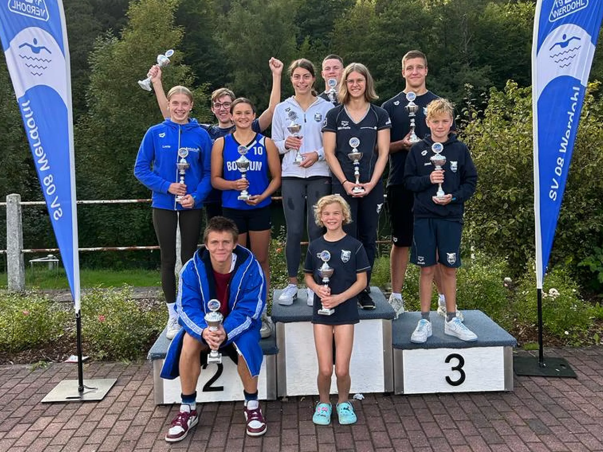 Den ersten Wettkampf der Saison 2023/2024 absolvierten 18 Blau-Weiß-Schwimmerinnen und Schwimmer am 2. und 3. September 2023 in Werdohl beim 37. Internationalen Schwimmfest. Gemeinsam mit den Aktiven der SG Ruhr, mit denen Blau-Weiß seit dieser Saison eine Trainingsgemeinschaft am Landesstützpunkt Schwimmen Bochum bildet, ist ein erfolgreicher Saisonauftakt gelungen: sehr viele Bestzeiten, Bahnrekorde und 49 Gold-, 28 Silber- und 16 Bronzemedaillen standen am Ende des ersten Wettkampfwochenendes in den Büchern.