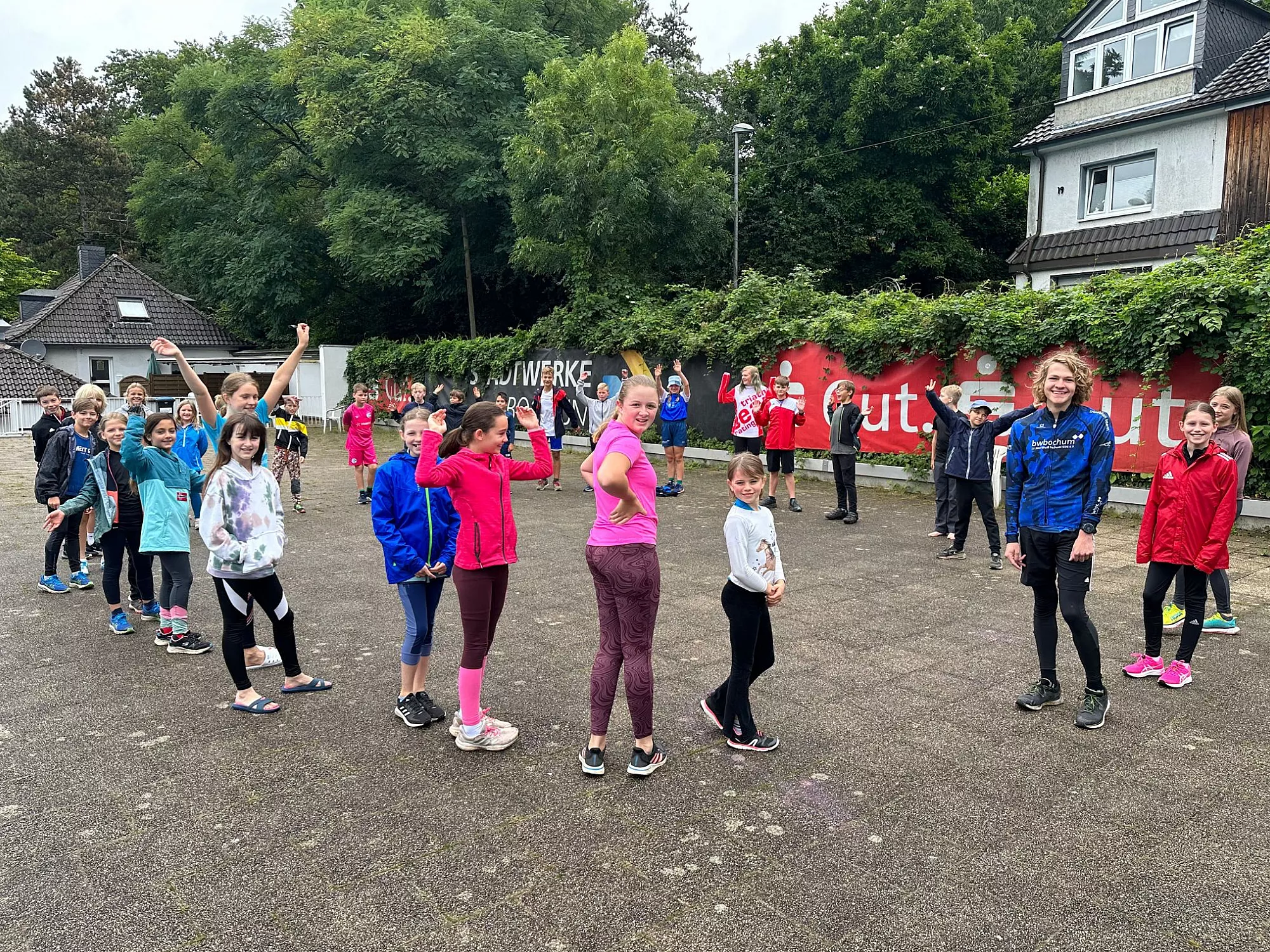 35 Kinder nahmen in diesem Jahr teil, davon waren ca. zwei Drittel Triathlonneulinge. Das letzte Drittel bestand zum einen aus unserer Jugend, aber auch, wie schon in den letzten zwei Jahren, unseren vier Freunden vom Triathlonteam Ratingen 08 (TTR08), die wie immer mit vollem Einsatz dabei waren. Da in den letzten zwei Jahren mittlerweile eine gute Freundschaft zwischen dem Bochumer Triathlonnachwuchs und den Vieren vom TTR entstanden ist, war gute Stimmung schon mal vorprogrammiert.