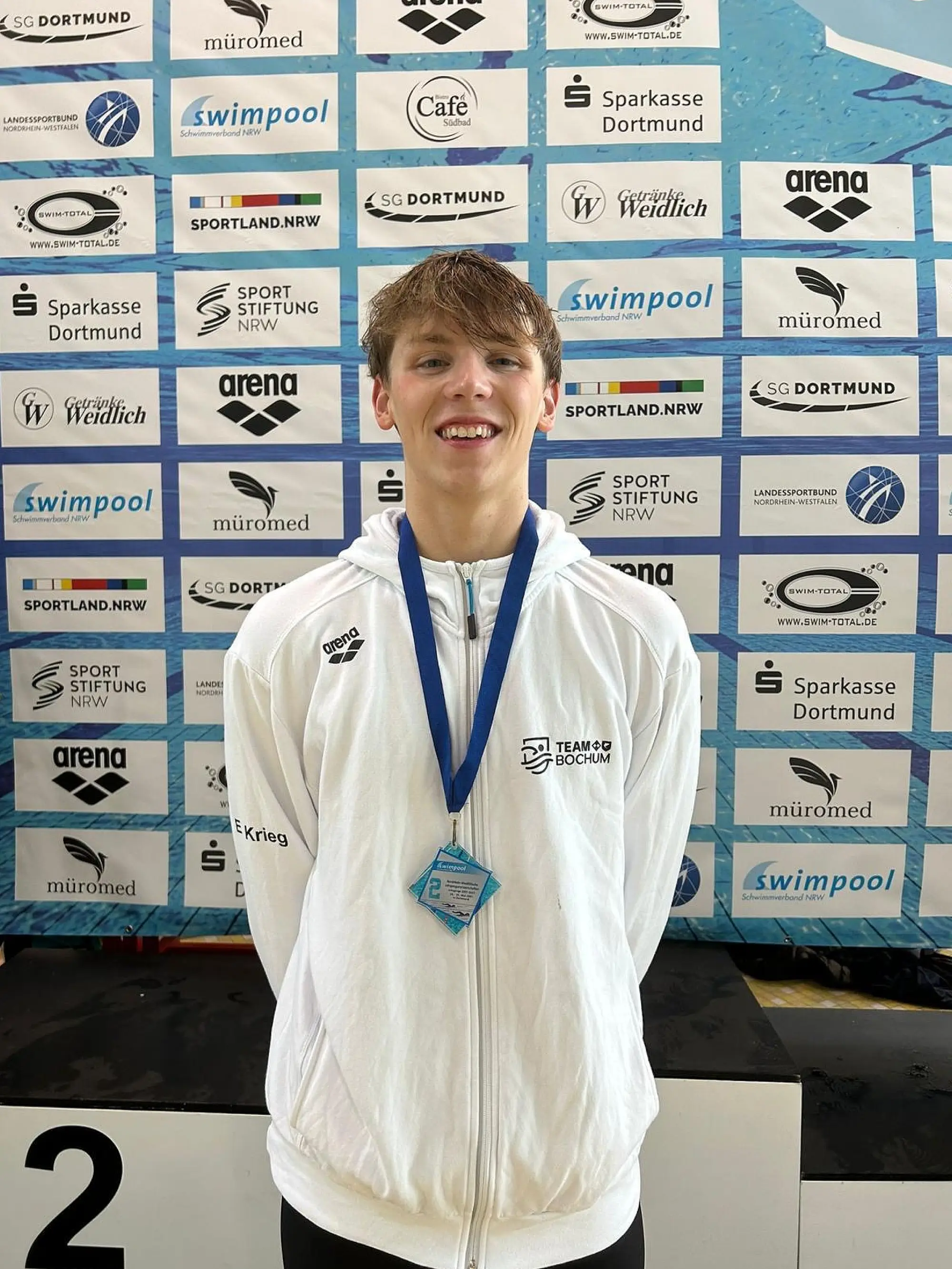 - Elias Krieg (Jg. 2007, Team Bochum) sicherte sich Gold über 100m Brust und Silber über 200m sowie 50m Brust.