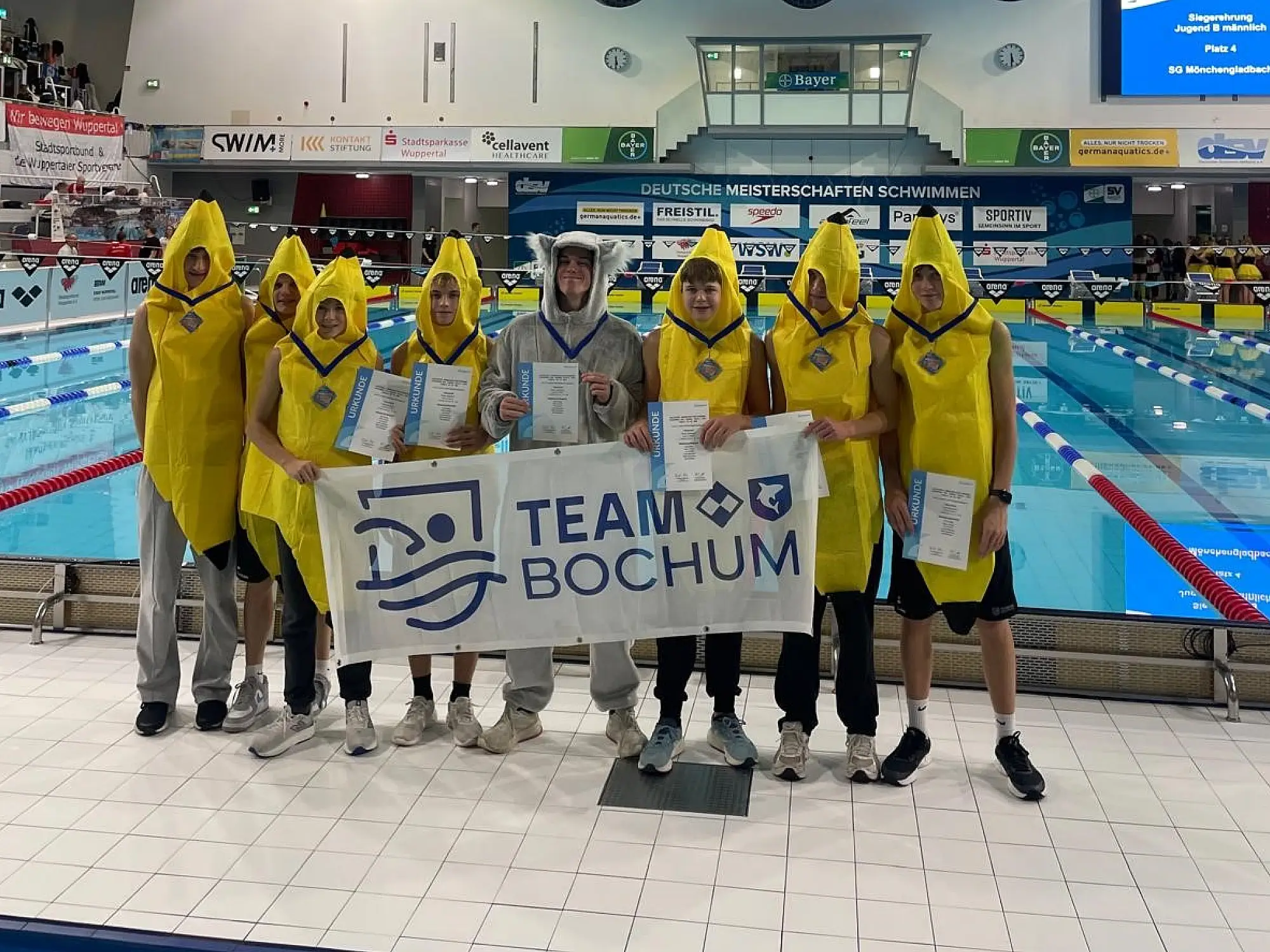 Am 21. und 22.11.2025 fand in der Wuppertaler Schwimmoper das NRW- Finale der Staffelmeisterschaften statt. Insgesamt acht Mannschaften aus Bochum hatten sich qualifiziert. Die D- und C- Jugend mit jeweils einer Mannschaft vom SV Blau-Weiß Bochum, in der B- und A-Jugend sechs Mannschaften vom Team Bochum.