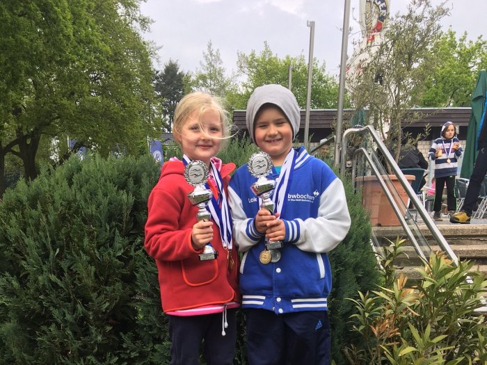 Strahlende Gewinner: Naya Johannknecht und Lucie Mia Racherbäumer mit ihren Pokalen.
