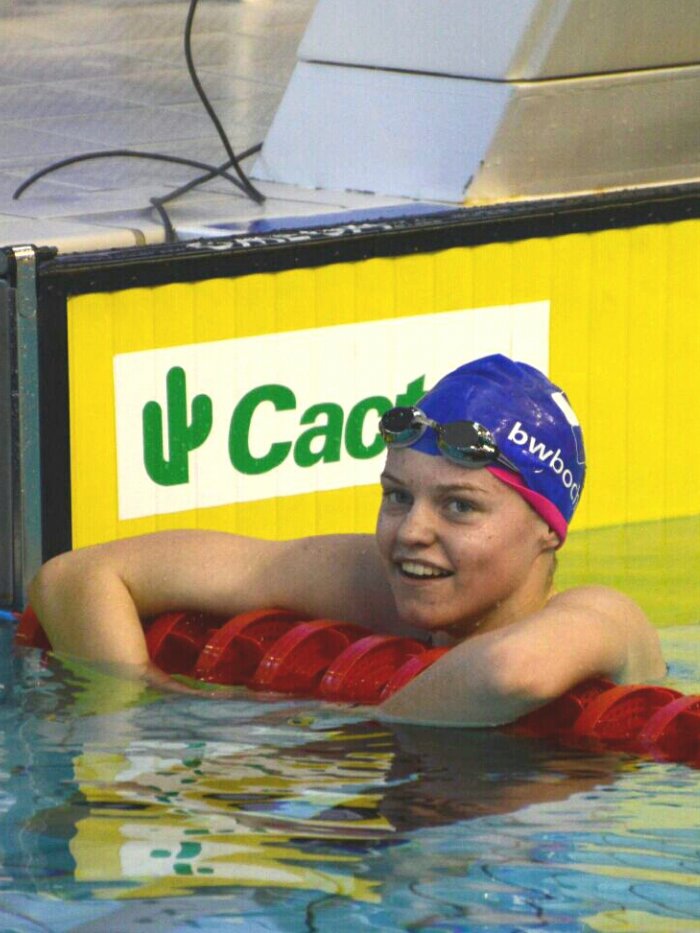 rechts: Gesa Wilden (Jg. 02): Südwestfälische Meisterin in der offenen Klasse über 50 Meter Schmetterling und Jahrgangsmeisterin über 200 Meter Schmetterling