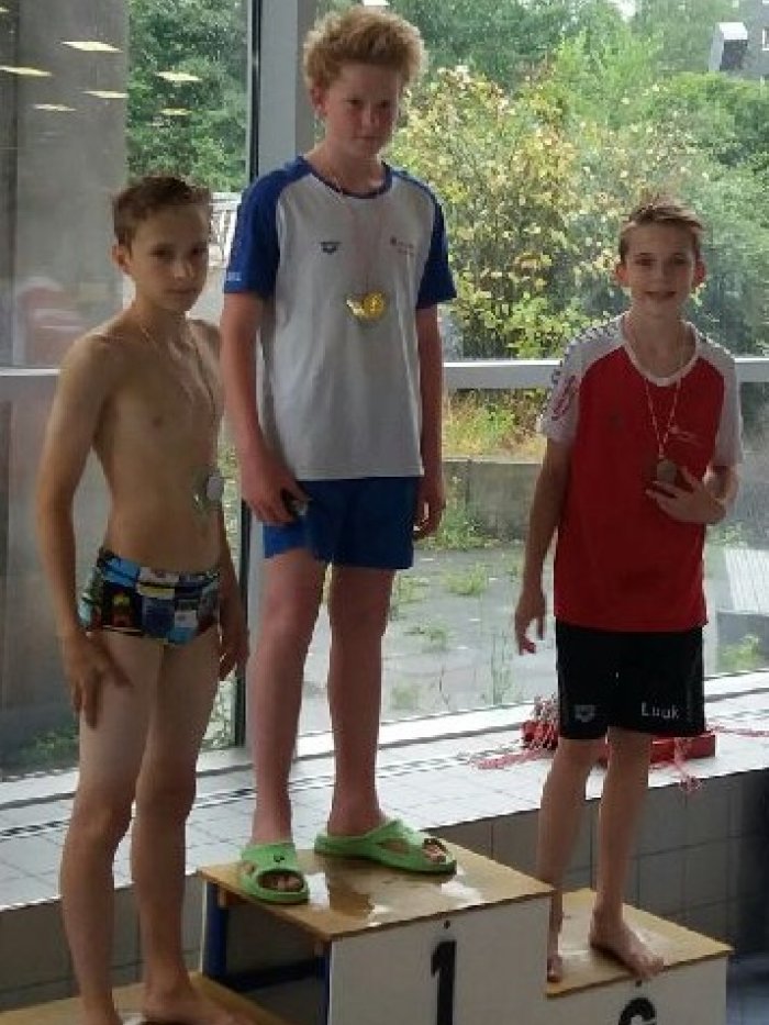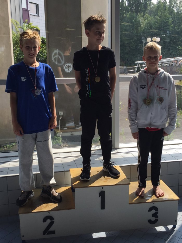 links: Siegerehrug Jg. 2007 über 200 Meter Freistil mit Ben Wichtermann und Linus Bungert (1. und 3.)