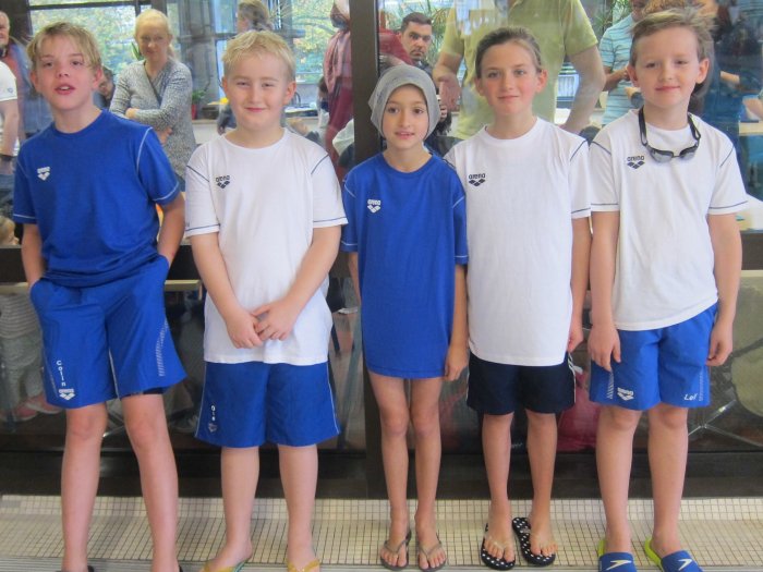 E-Jugend mixed 1. Mannschaft: Mark Dwyer, Mia Wichtermann, Tessa Mauss, Rayan Marcel Von der Höhe und Ben Racherbäumer.